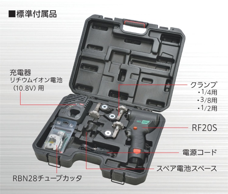 | コードレスフレアRF20S | 424901 | 銅管(O材、OL材)JIS H3300 C1220T 1/4、3/8、1/2、5/8※、3/4※ |