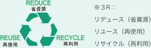 - 廃棄物の削減・再利用活動、省エネルギー、省資源に取組みます。