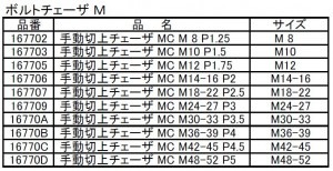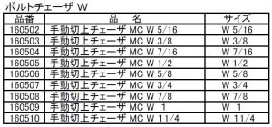 弊社では、ボルト用ねじとしてウイット並目ねじ、メートル並目ねじ、ユニファイ並目ねじのチェーザと適合するダイヘッドを取り揃えております。下表のボルトチェーザと適合するボルトダイヘッドの組合せをご参照ください。